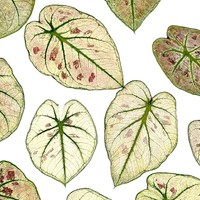 Caladium 'Pink Splash' งานศิลปะใบไม้แห้งกรอบกดดอกไม้สำหรับวันพ่อวันแม่วันอีสเตอร์